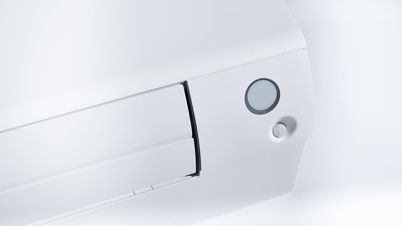 Der Sensor zur Bewegungserkennung in 2 Bereichen richtet den Luftstrom von Personen im Raum weg. Sind keine Personen im Raum, wechselt das System in den Energiesparmodus.